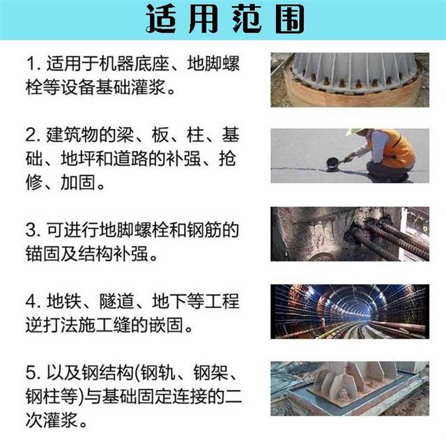 5高流态、不泌水、防锈蚀,确保最终的物理性能一致并防止堵寒灌浆泵。7可长距离、高度泵送。